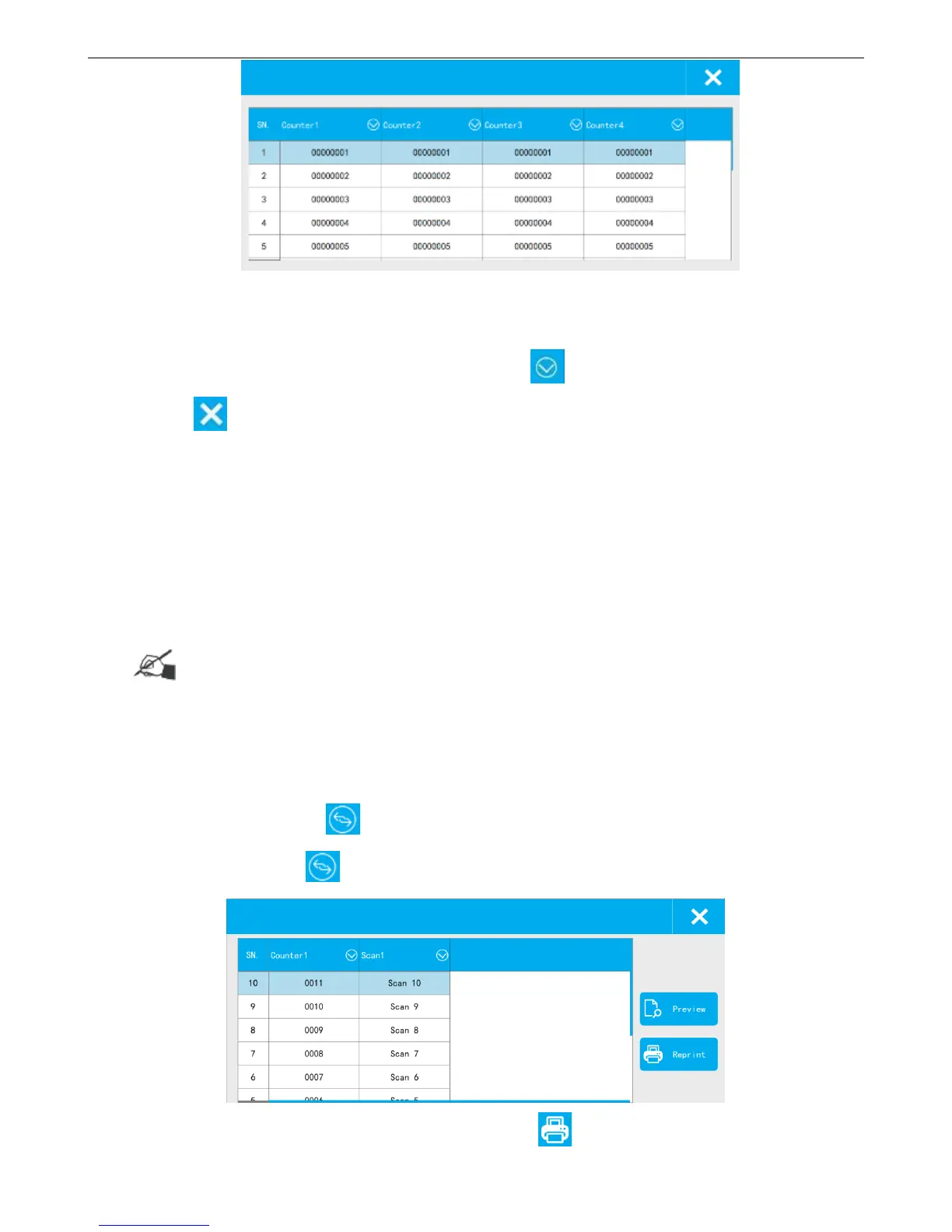 Start/Stop printing, click 【Reprint】to reprint the last message.