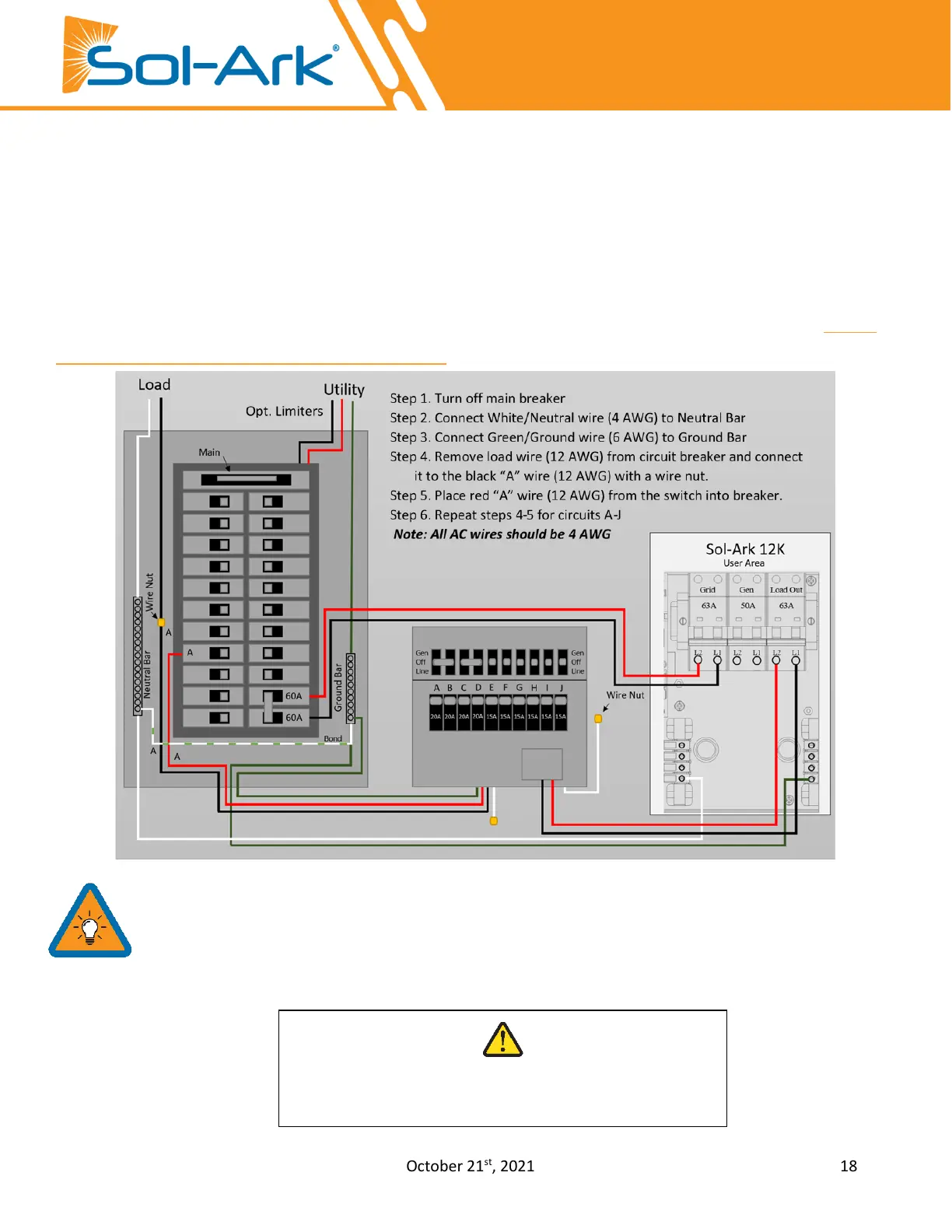 • Transf. Switch = Optional. You may wire the "Load" output of the Sol-Ark 12K directly to a Main Lug