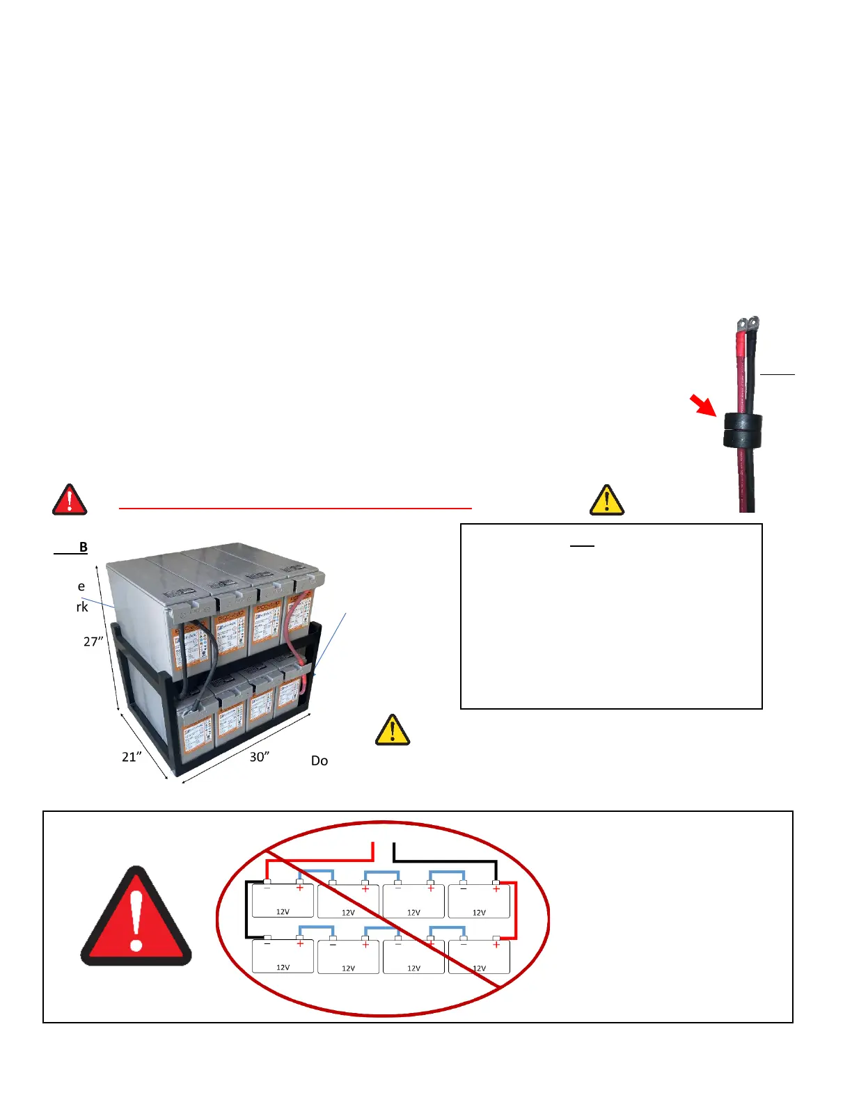 B. Install included toroids (Part e. on pg. 4) on battery input cables as shown in Fig. A to the right