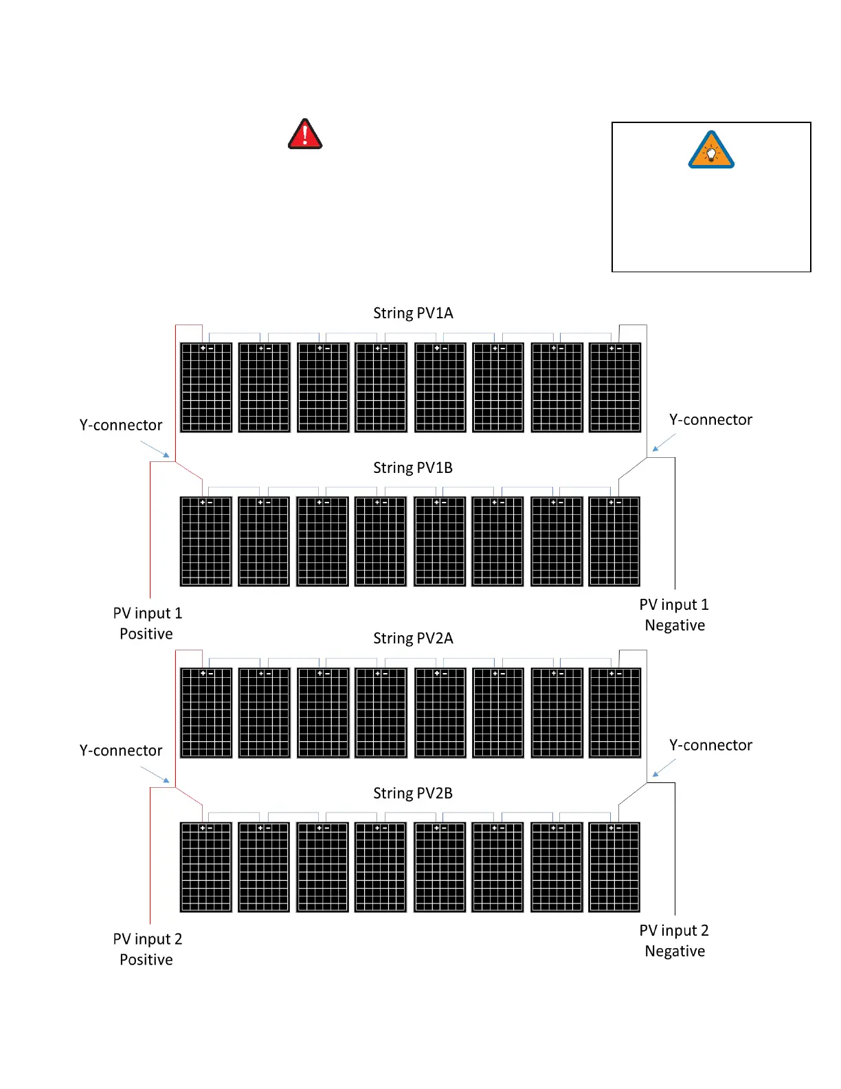 i. PV1 A/B must be the same voltage if using both strings