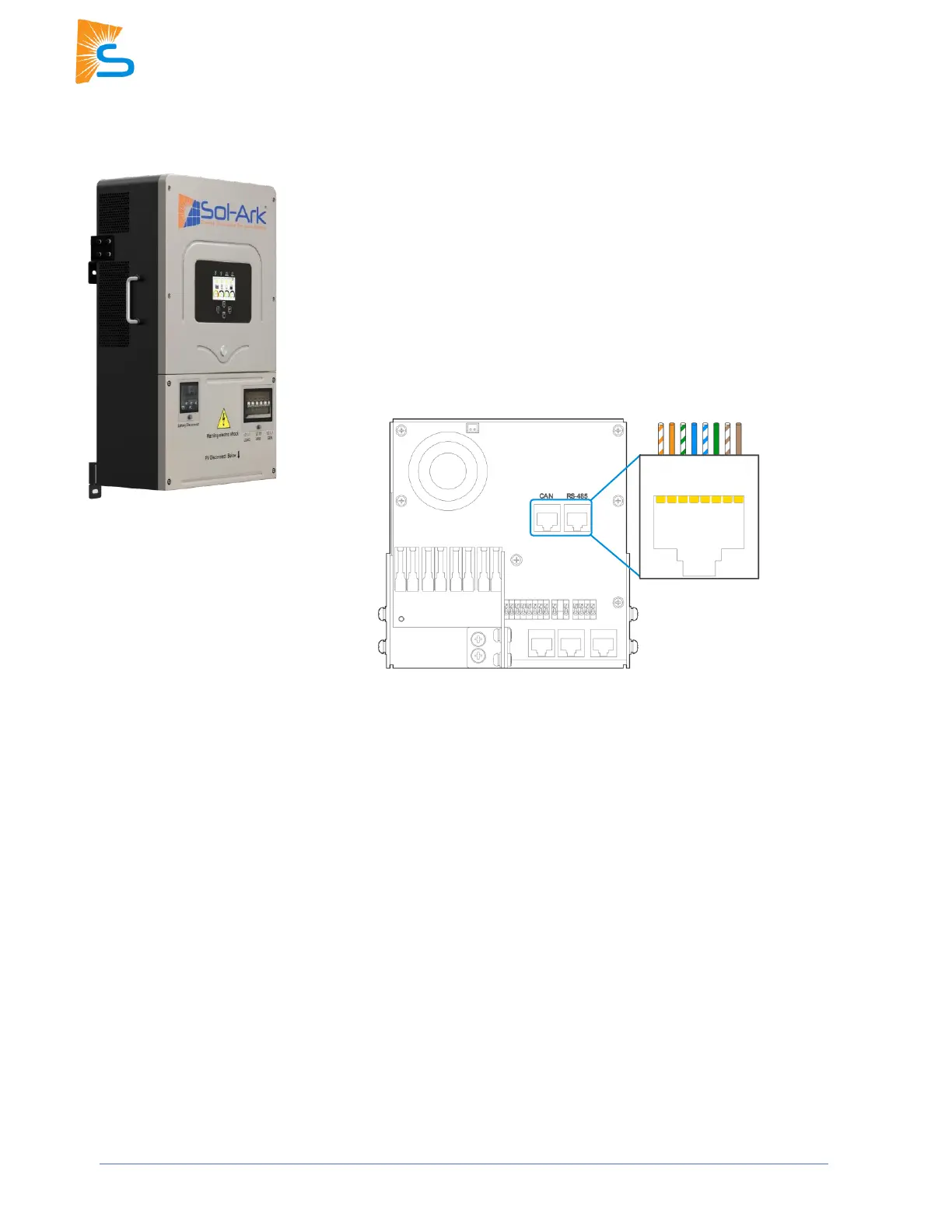 The Sol-Ark 12K Indoor can communicate through two RJ-45 ports labeled