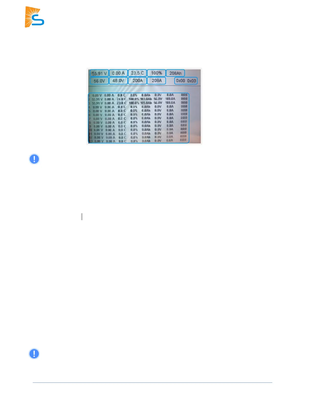 11. Battery Data Chart: This table lists individual information from each connected battery up to a