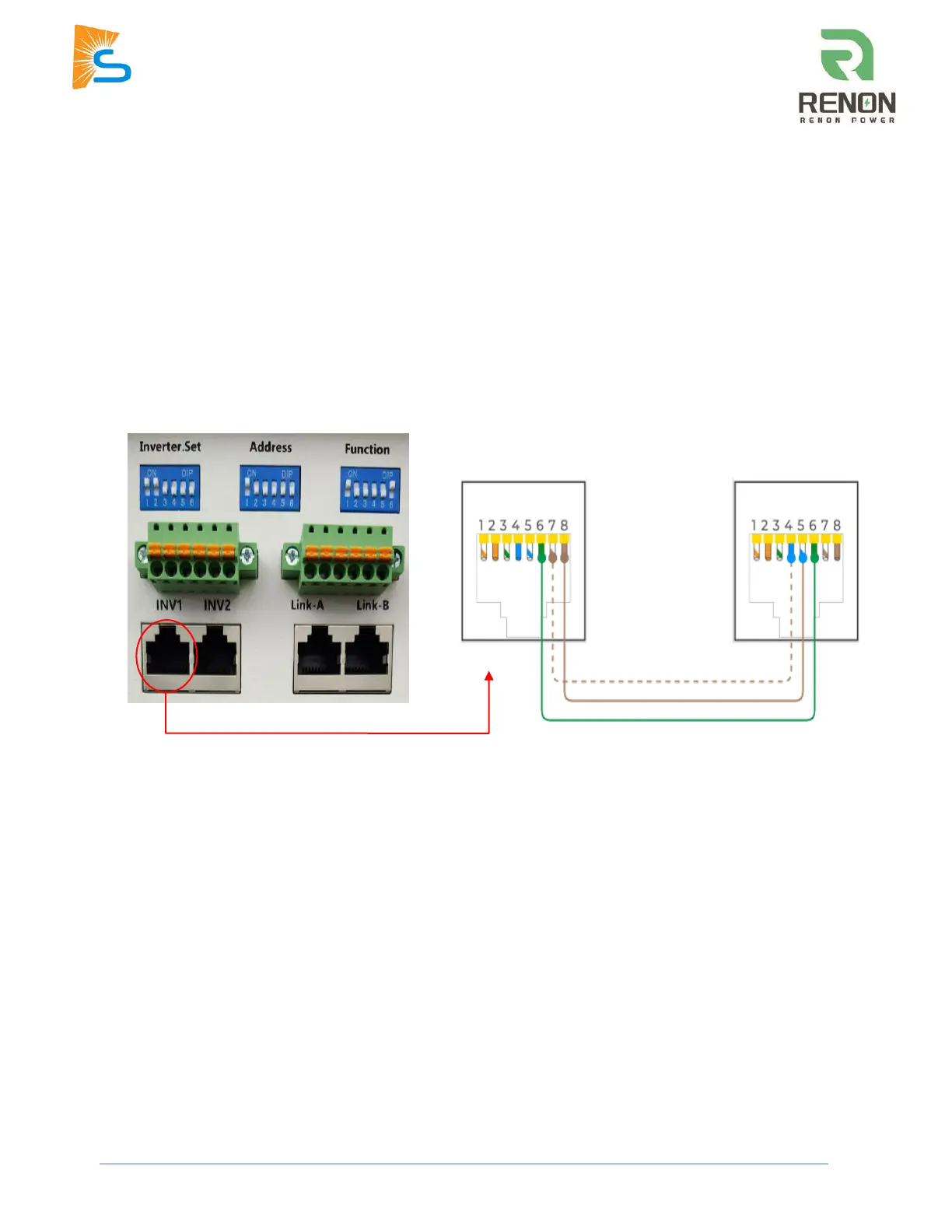 1. Connect the cable between the master battery’s Main Control Module “INV 1” port and the inverter’s