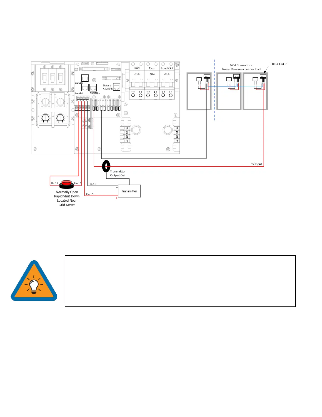 • Transmitter fits inside the user area of the Sol-Ark 5K but can cause interference