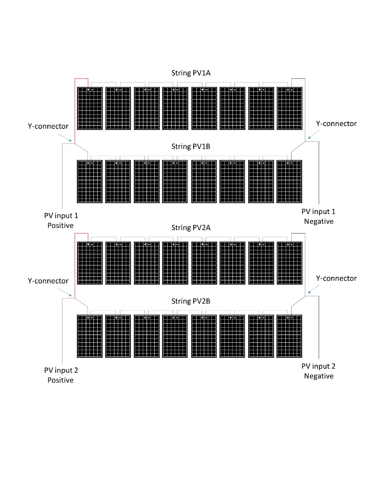 If using Y-Connectors: (Running two strings in parallel, totaling 20A (self-limiting) Note: separate wires can be