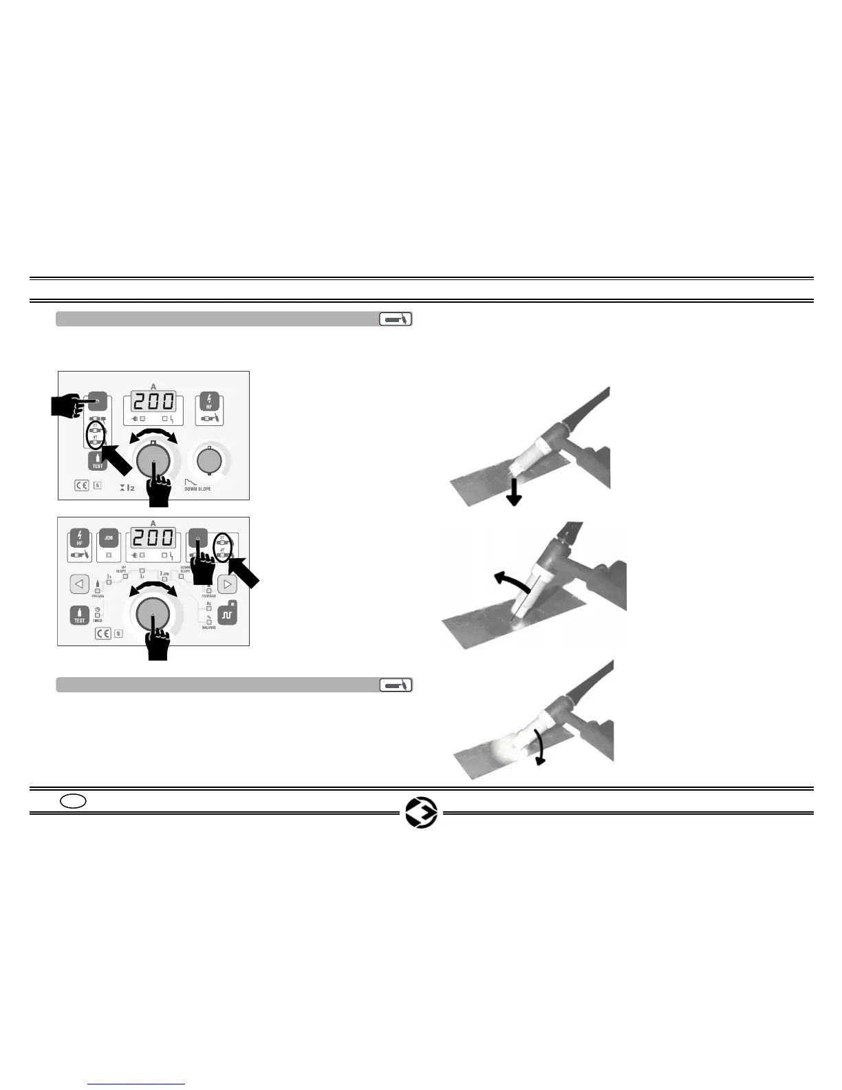 der Brandfackel drücken. Siehe BETRIEB WIG DC auf Seite 11.