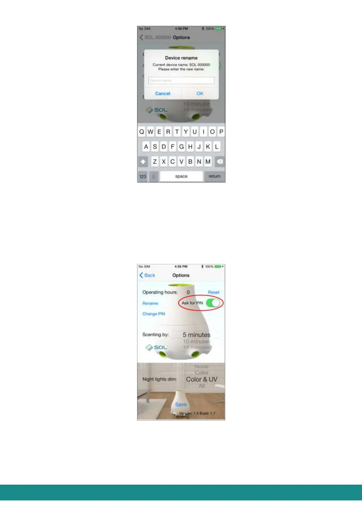 “Forget device” function of Part 4.2.5.4 will delete the former name (SOL-ONE) from the list, and