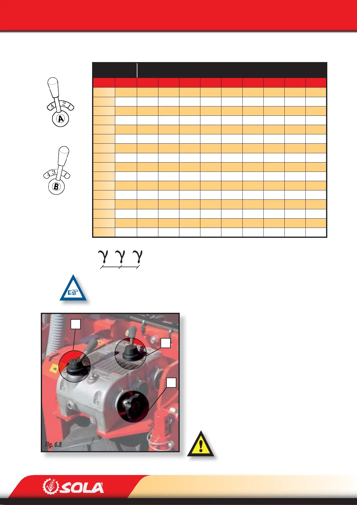 BEFORE MODIFYING THE TRANSMISSION RATIO, CHECK THAT THE POSITION OF THE LEVERS