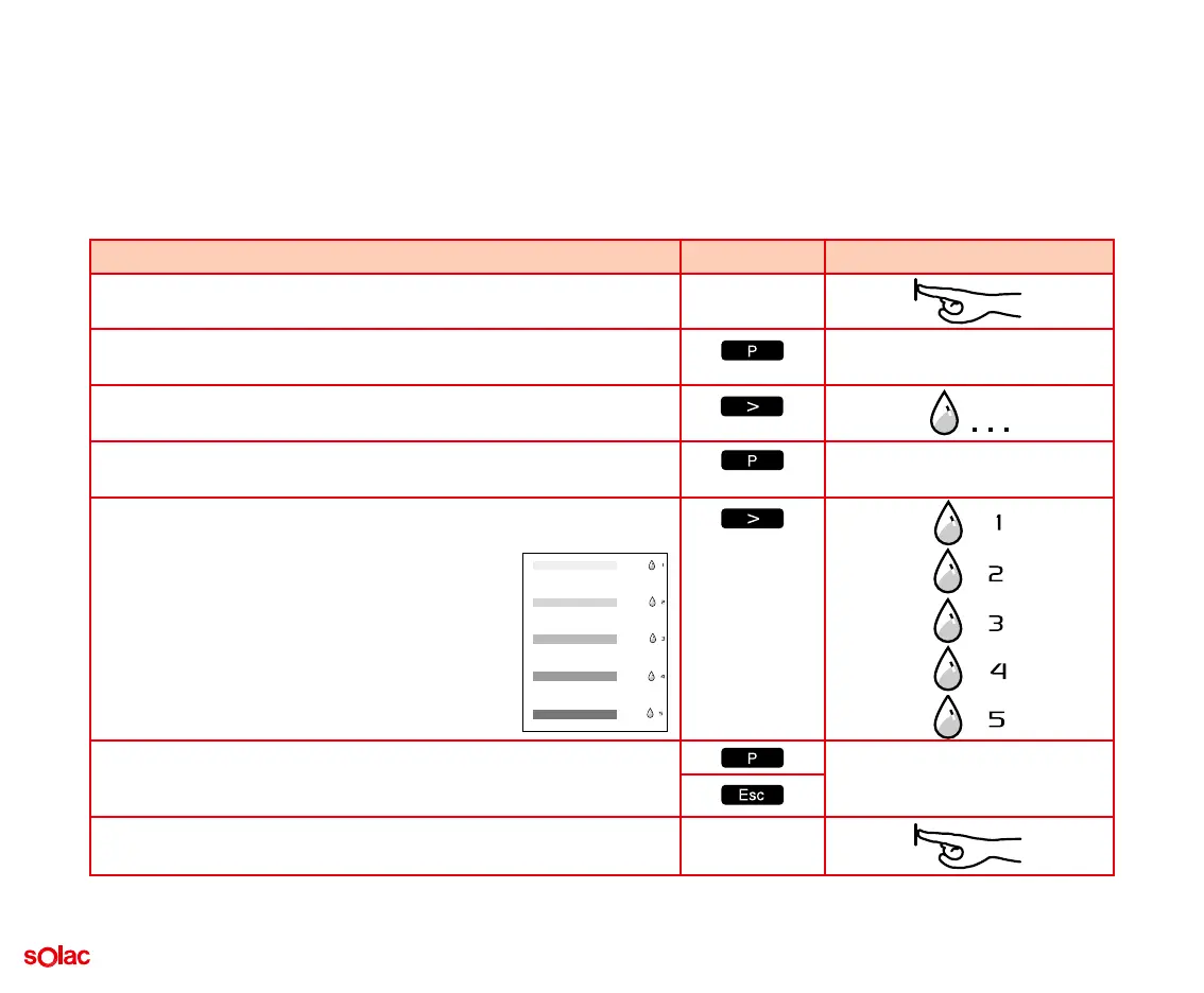Stisknutím ‚>‘ zvýšíte stupeň tvrdosti vody