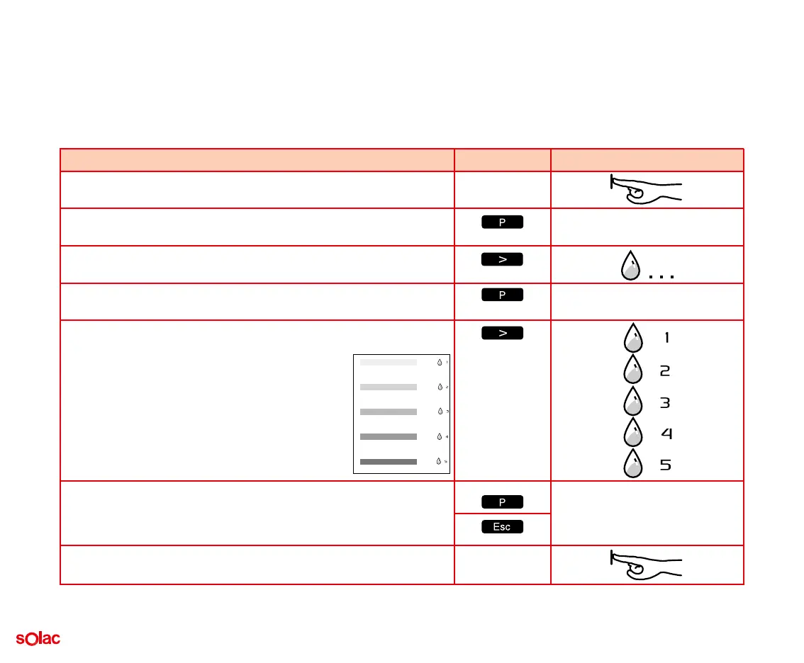 5. A „P” gomb megnyomása után a vízkeménység menü megjelenik a