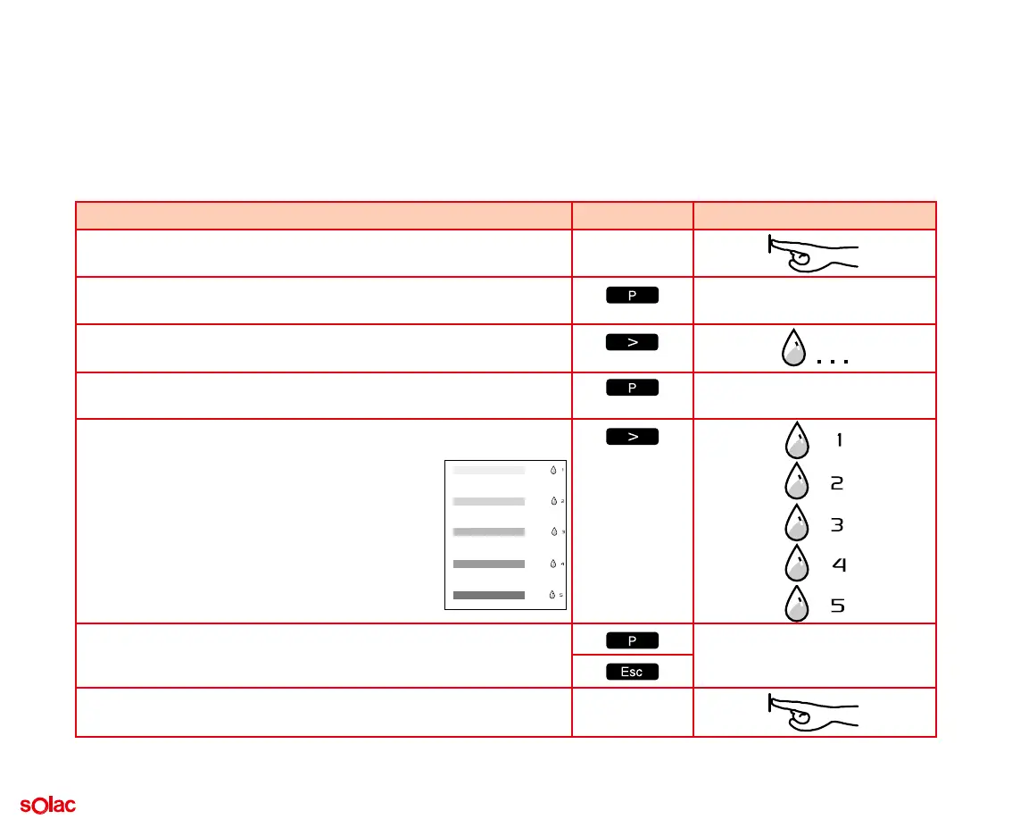 duritatea apei de la 1 la 5 (după 5 se revine la 1).
