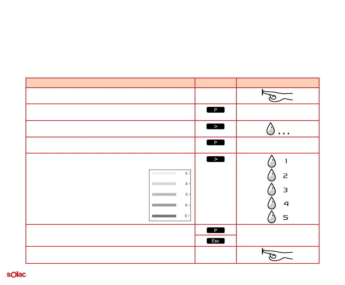 5. Après avoir appuyé sur « P », le menu de dureté de l’eau s’affichera