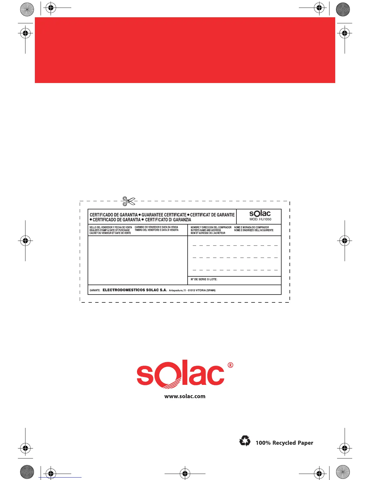 SOLAC HU1050 - Main Components; Product Parts Identification; Operation and Use; Basic Operation Steps