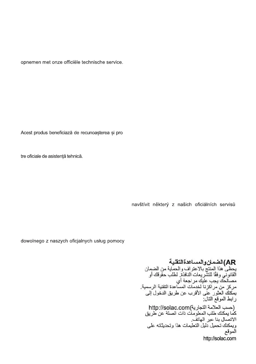 RO) GARANȚIE ȘI ASISTENȚĂ TEH-