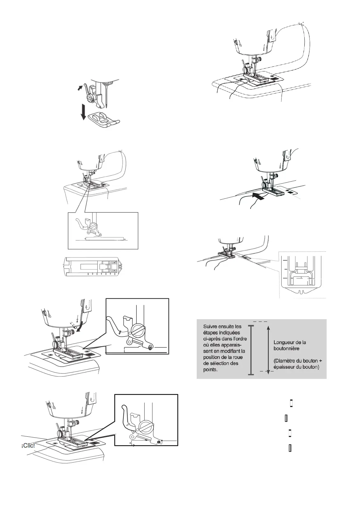 - Vous pouvez coudre des boutonnières en utilisant le pied presseur