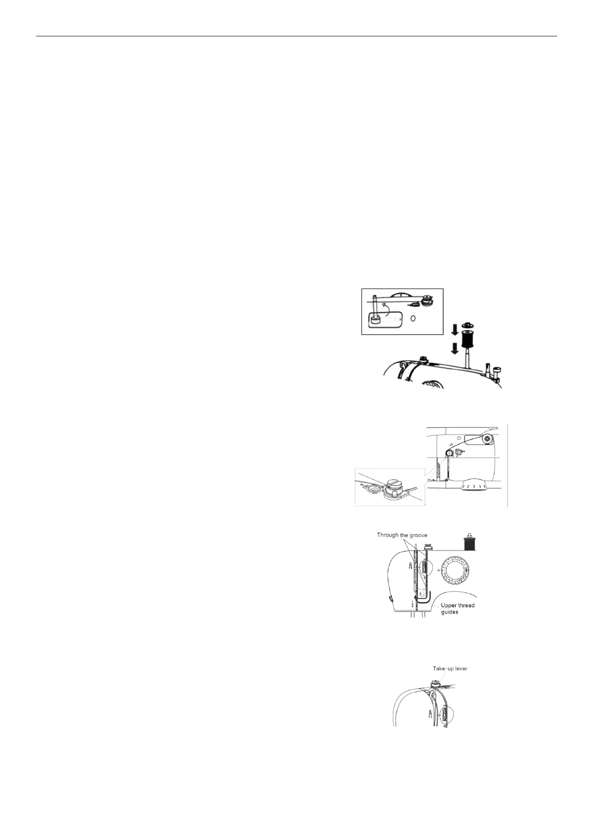 1. Rimuovere il fermalo, posizionare un rocchetto di lo per macchina