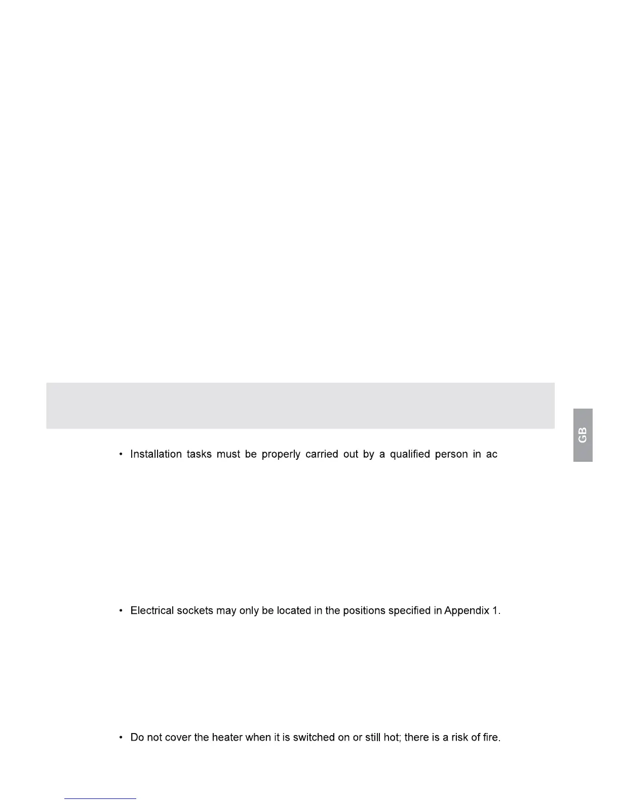 • The heater must be protected with at least a 16A (slow) fuse.