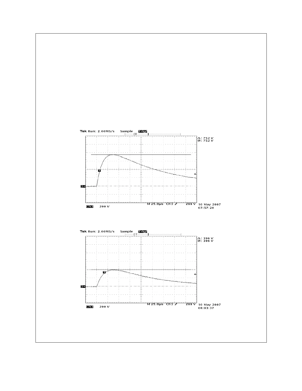Open circuit voltage is measured using a x100 voltage probe. Verify the waveform meets the requirement for time