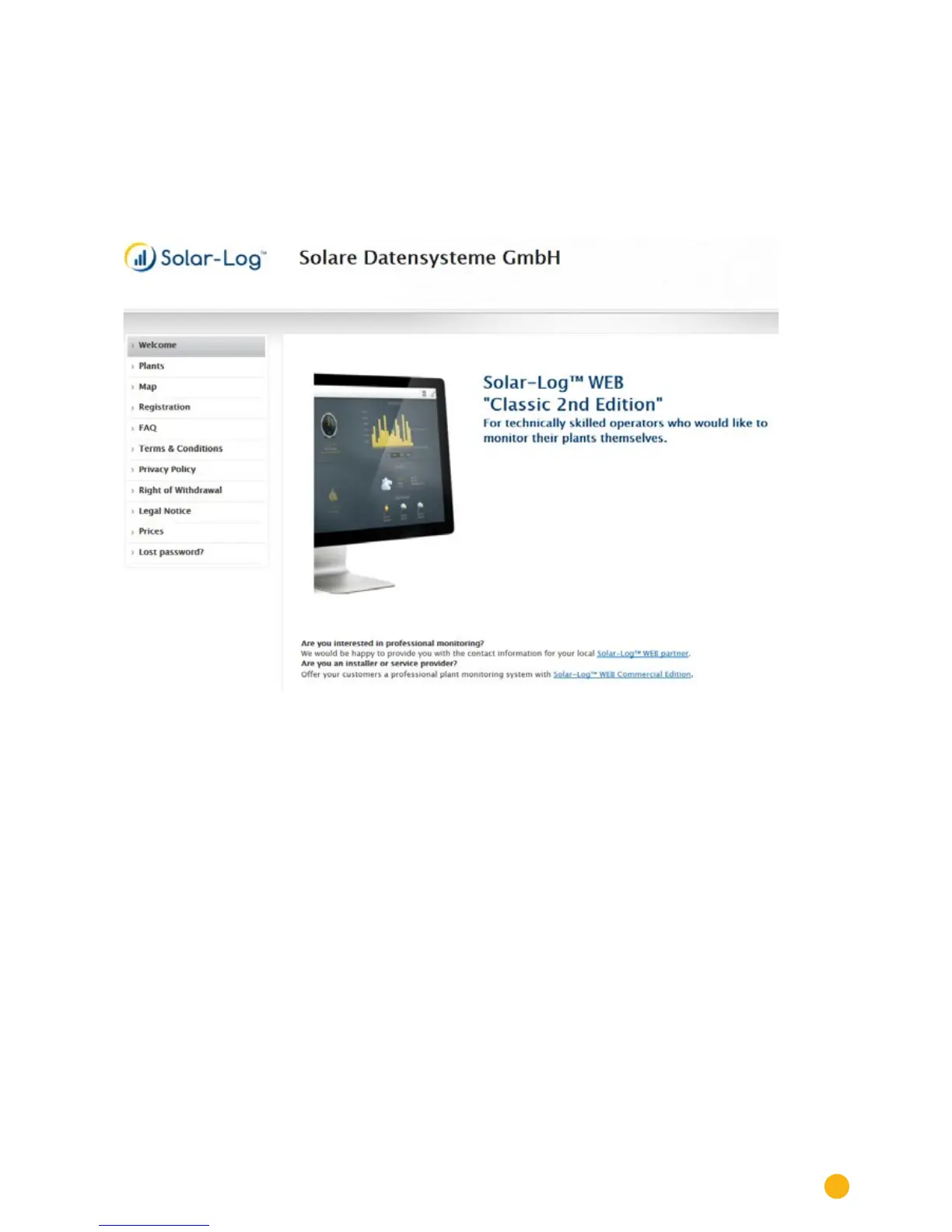 Start your browser and go to the Solar-Log™ WEB start page. Enter the URL that you received in your