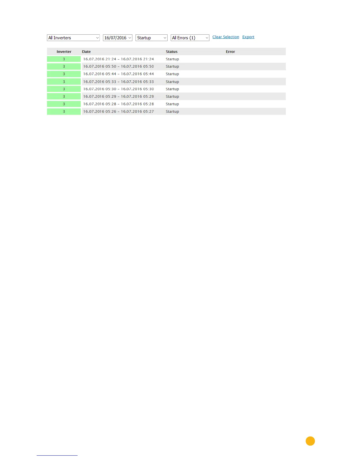 • Only the events from the selected inverters are displayed.
