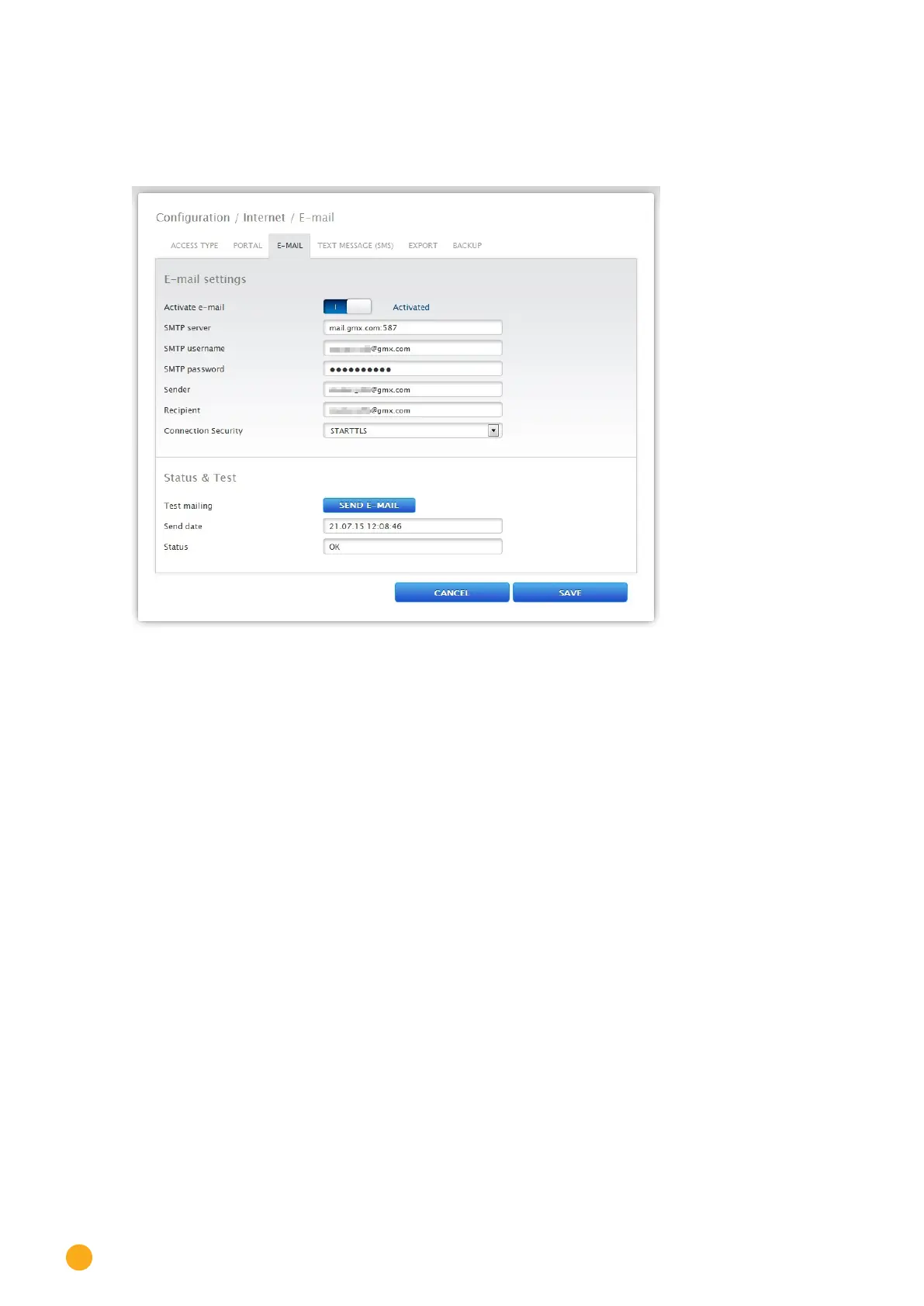Status & Test e-mail section