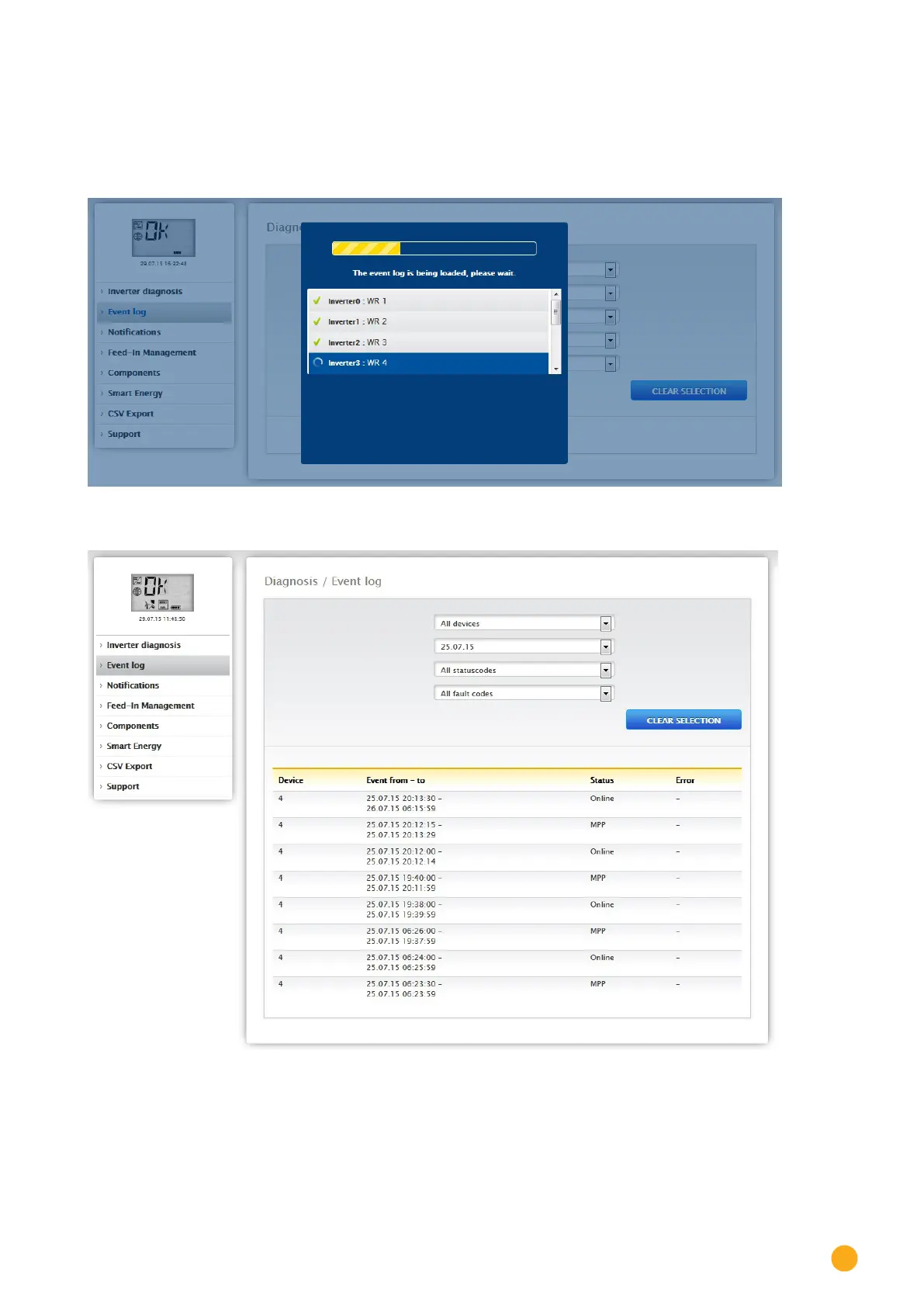 The following mode is loaded when accessing the event logs.