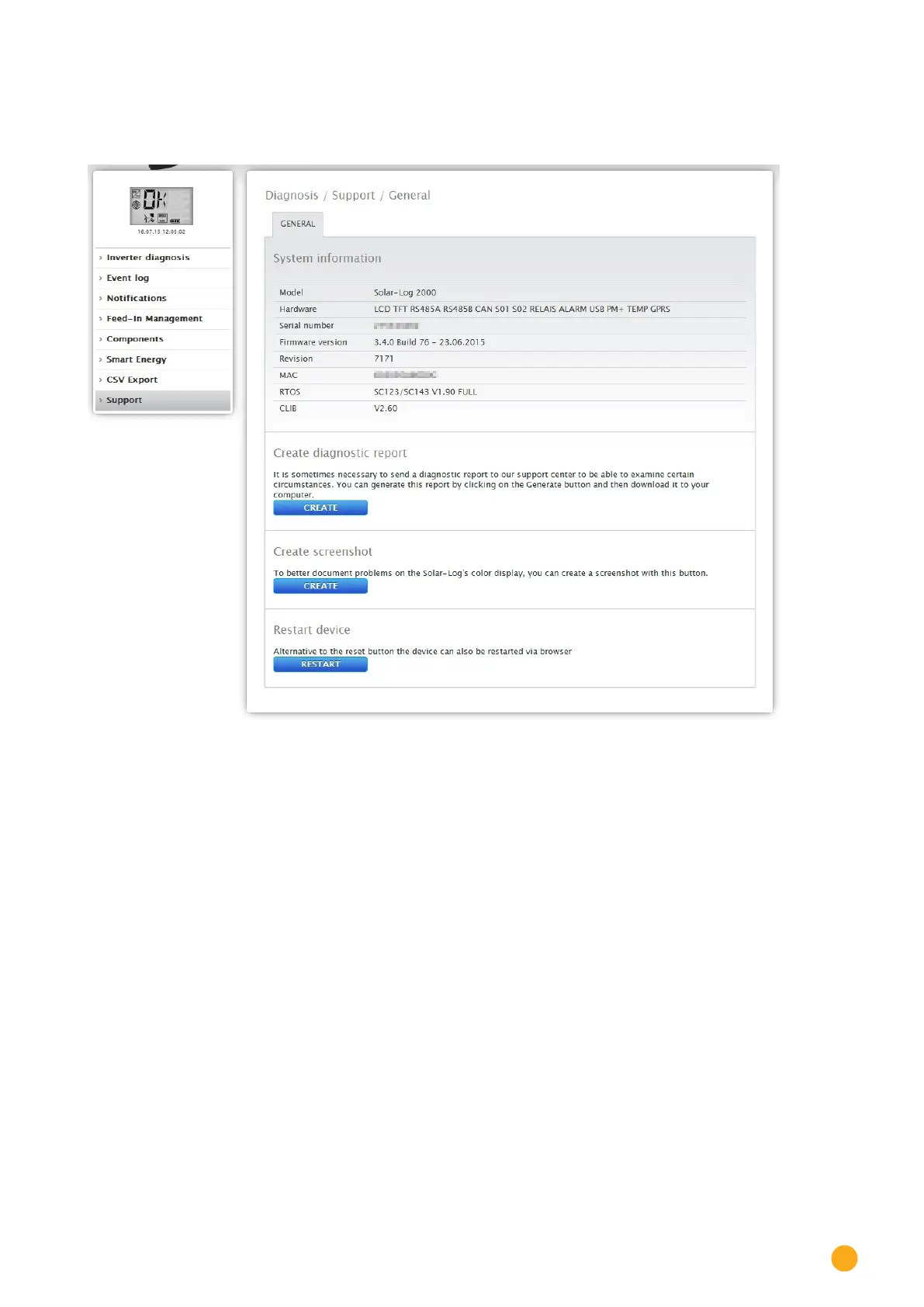 document errors on the Solar-Log’s internal display. See Figure: Support - General.
