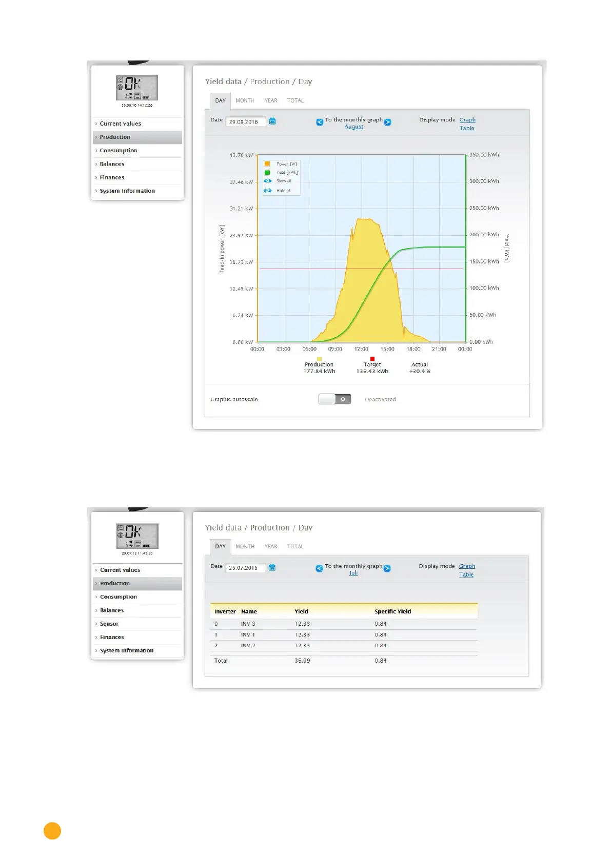 inverters and displayed as a table. In this way, you can check the output of every inverter at any time.