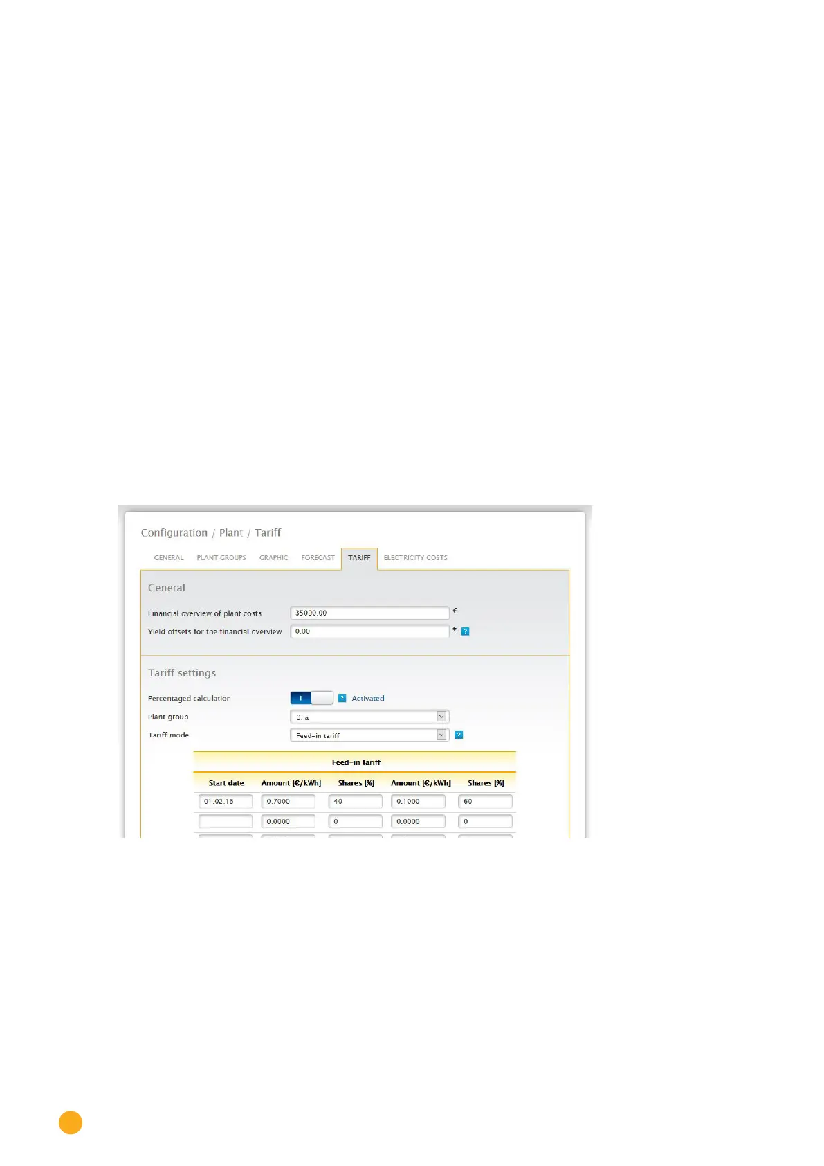 tariffs need to be used. The first feed-in tariff covers 90% of the power generated and the second feed-in