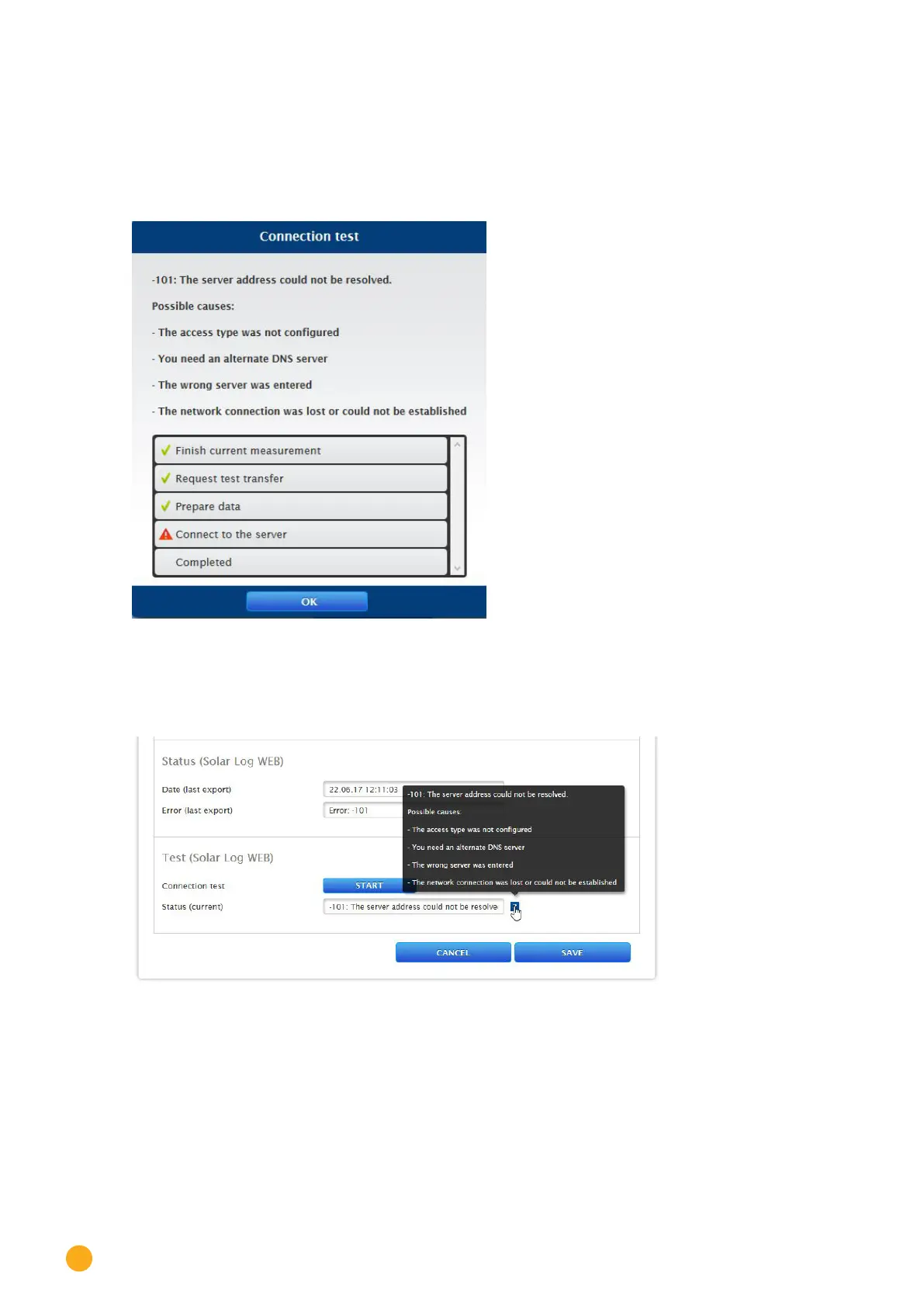 progress of test. The connection test also indicates if the test was successful or not. If it was not successful,