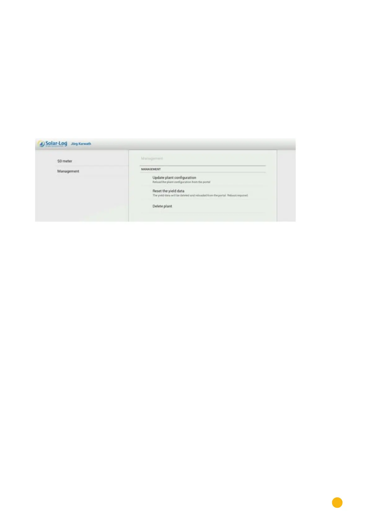Be selecting Management, you can update the plant configuration, reset yield data or also delete the