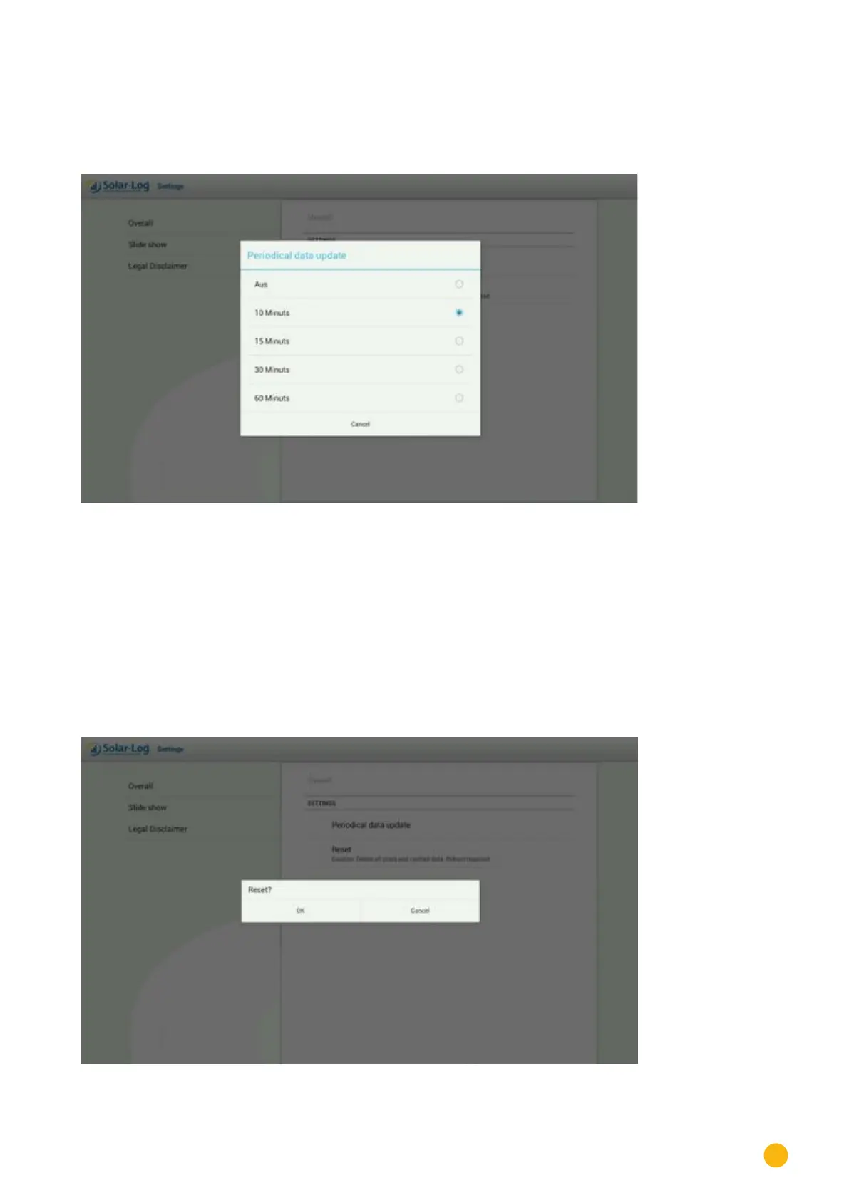 2. Tap on the update interval to automatically update the data. The window automatically closes after the selec-