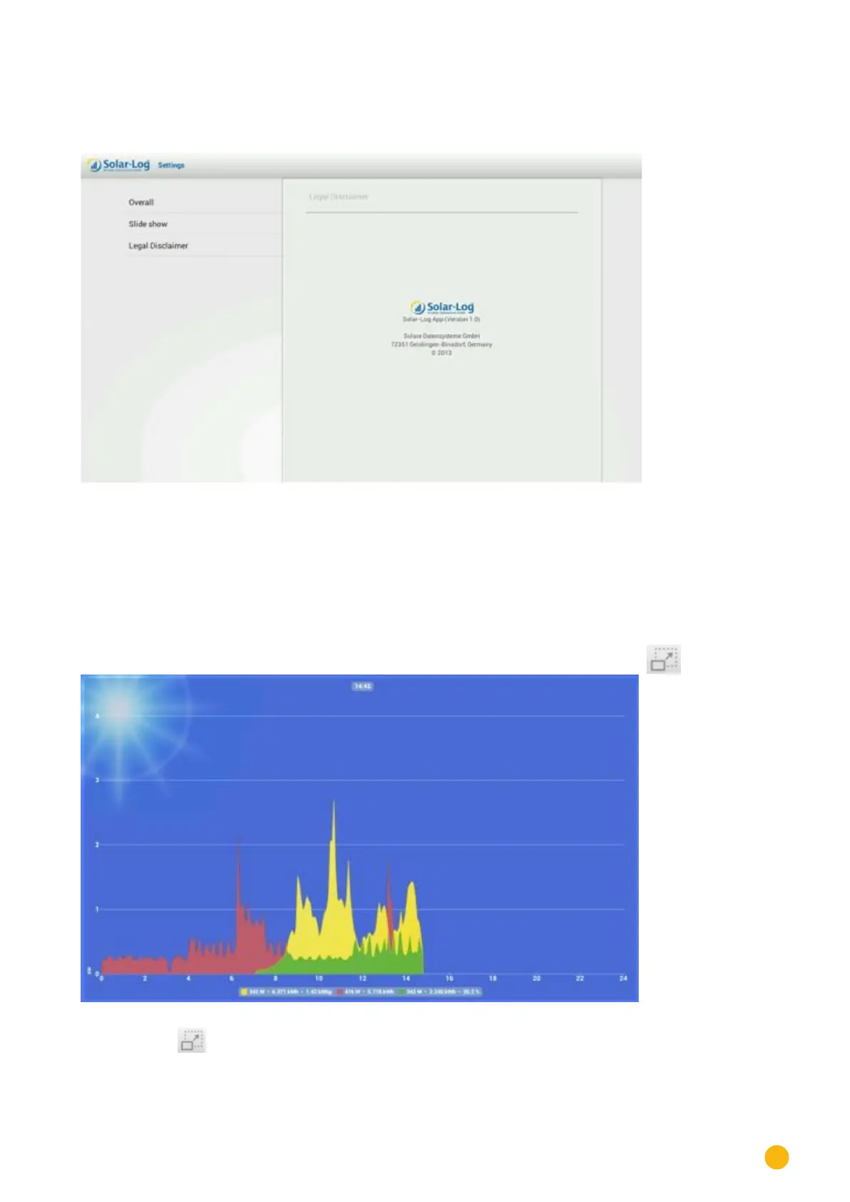 The "picture frame" alternates in displaying the various modules of the Solar-Log™ App.