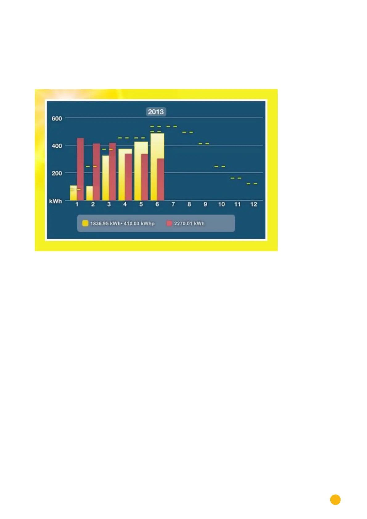 The monthly yields of the selected year are displayed as a bar graph. The dotted line in the view displays