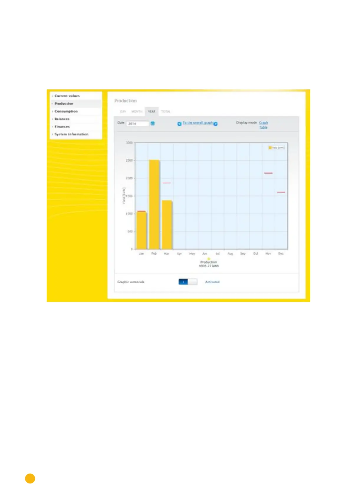 Move the mouse above one of the bars to display the monthly yield with a comparison of the cur-