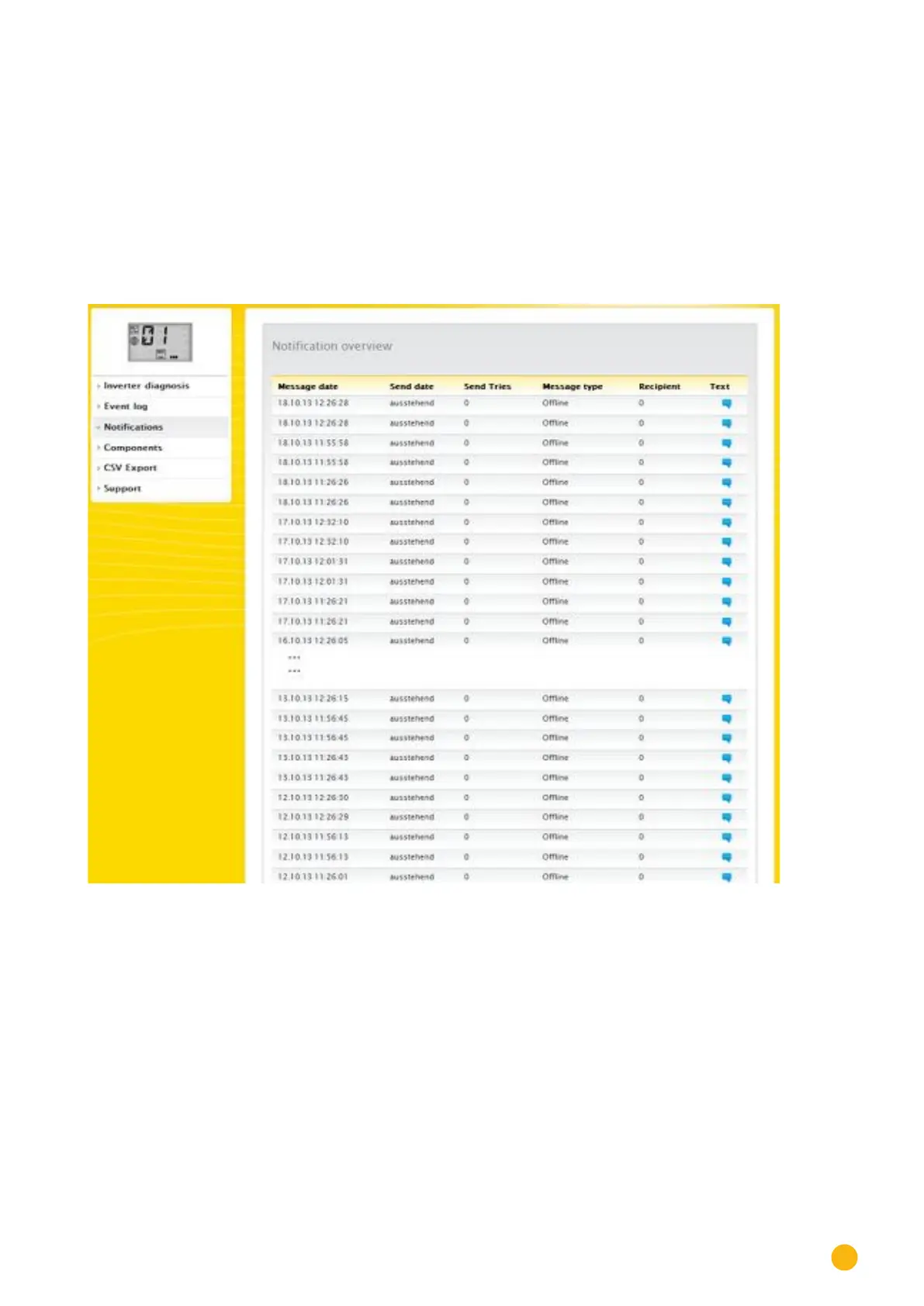 This column displays the type message. (For example: Offline. If an inverter is offline)