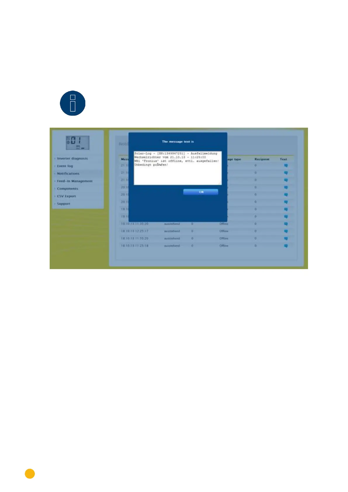 There is the option to display the messages sent by the Solar-Log™ under Text.