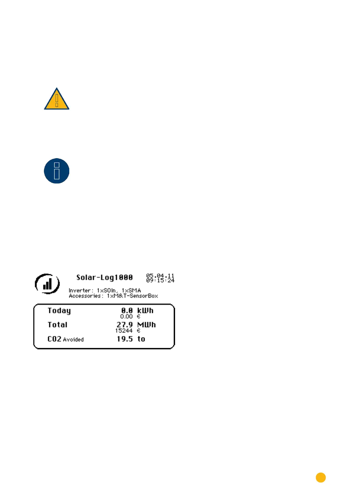 After the display of the Solar-Log 1000 has been touched, it automatically displays the yield for the cur-