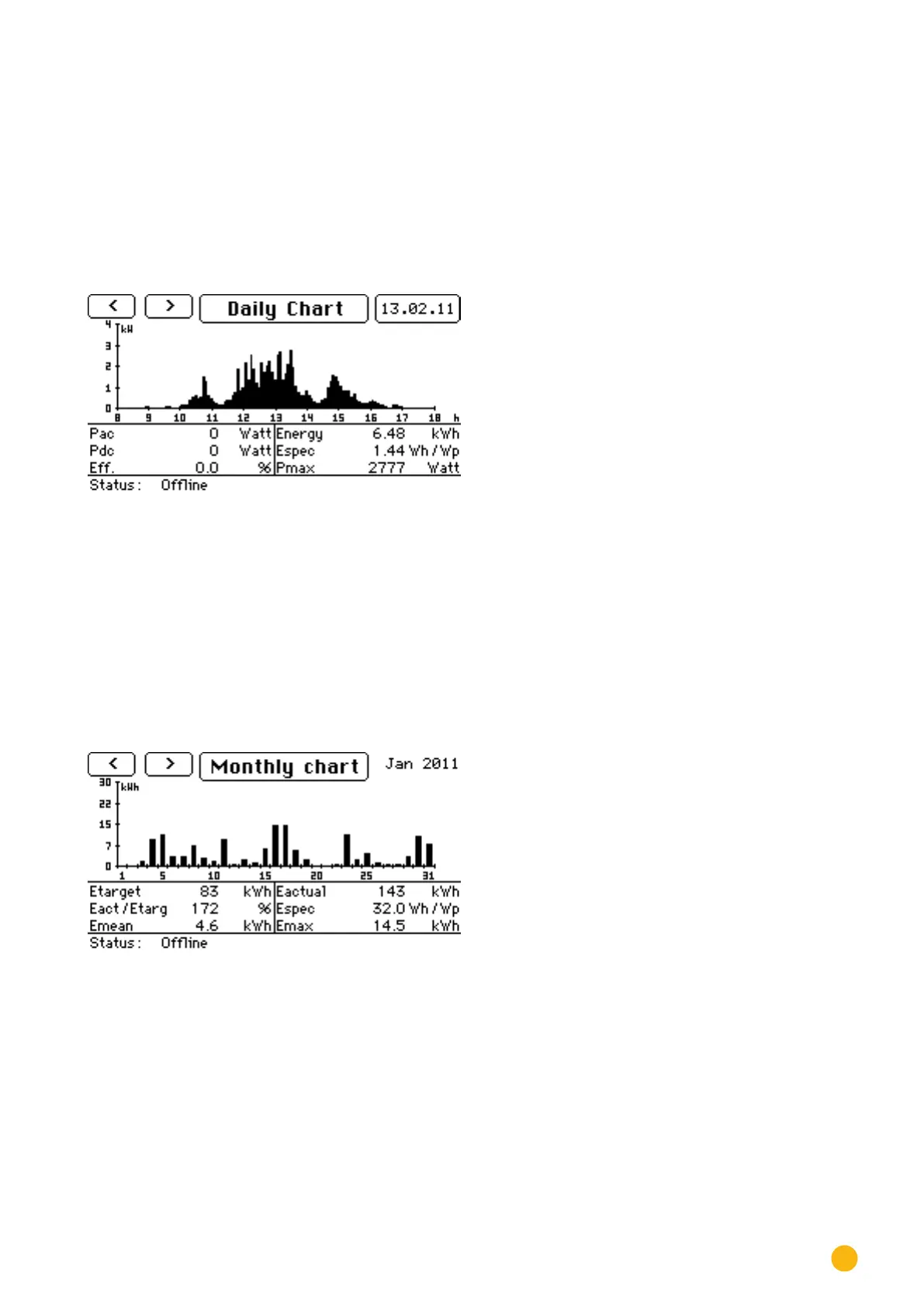 Tap on the Monthly Graph to display the yield values for the connected inverters.