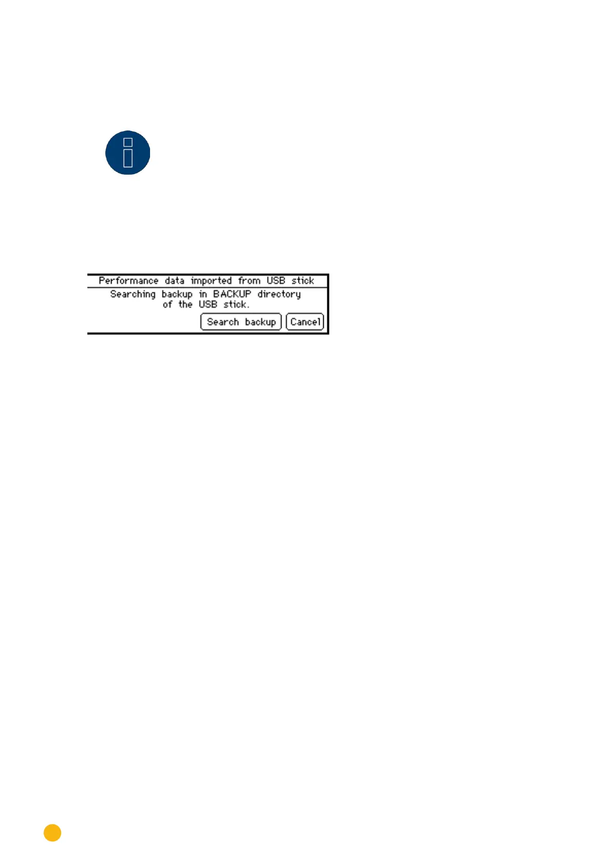 The device searches the USB stick for a backup directory and copies the data. It can take several