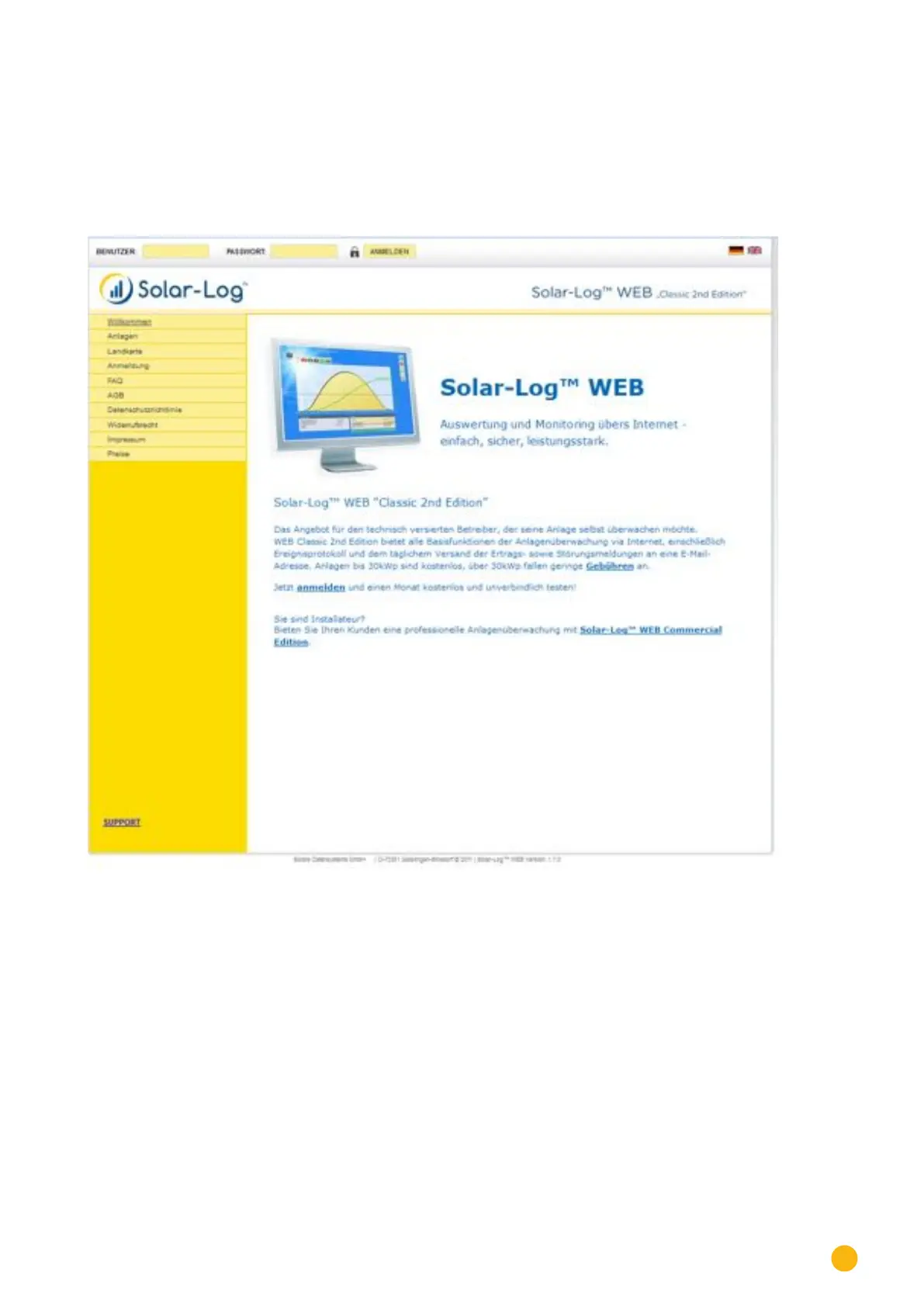 Start your browser and go to the Solar-LogTM WEB start page. Enter the URL that you received in your
