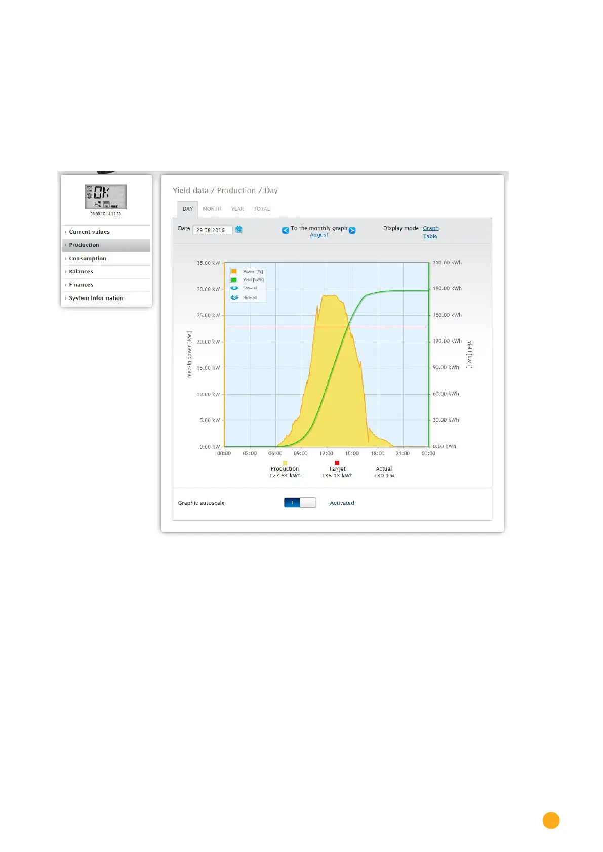 Fig.: Daily View of the Production Graph with the Auto Scaling activated