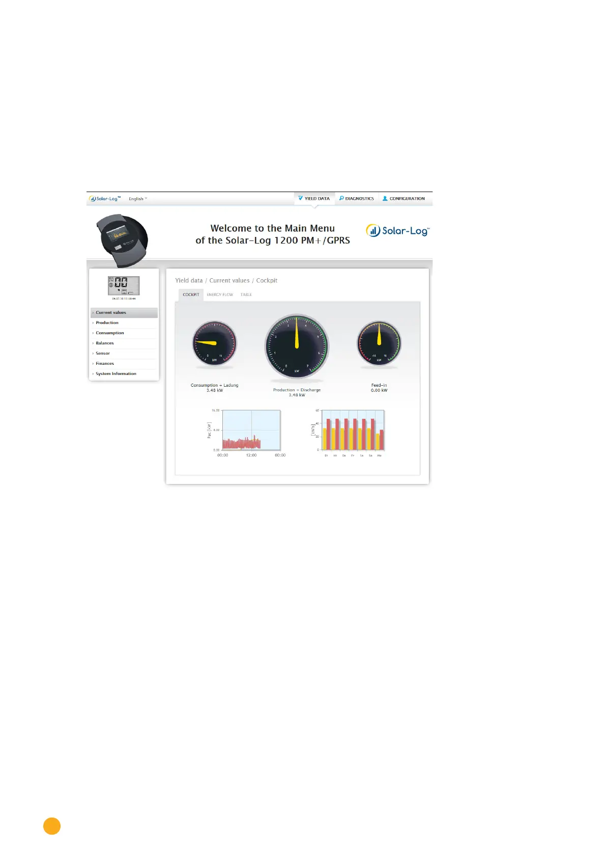 Fig.: Main menu of the Solar-Log 2000 PM+ GPRS