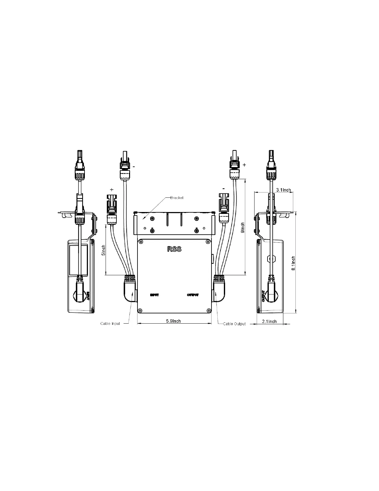 cables, output cables, SMART RSS box, and mounting bracket. The polarity of the input and