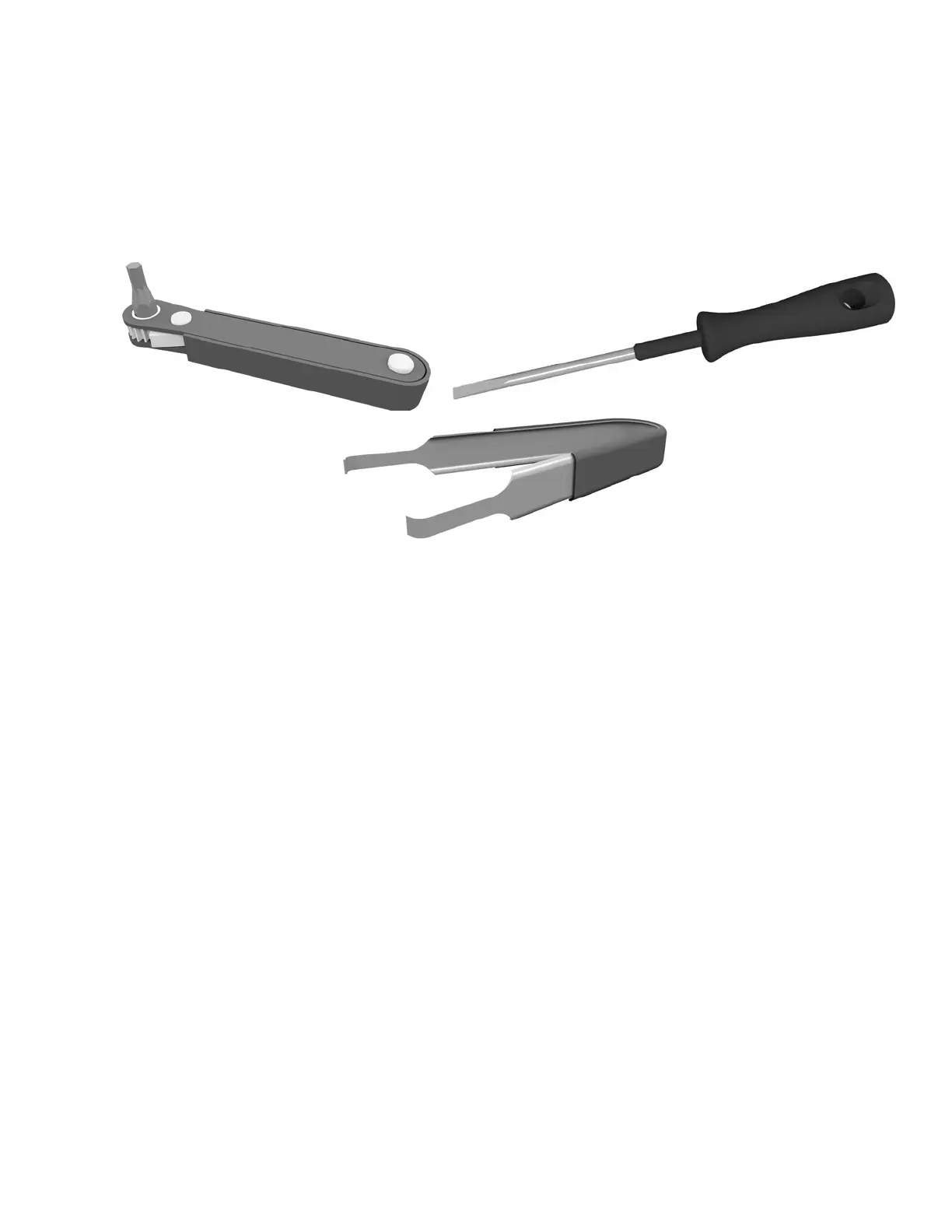 Figure 1-3: Ratchet wrench, long-shank screwdriver, and chip puller