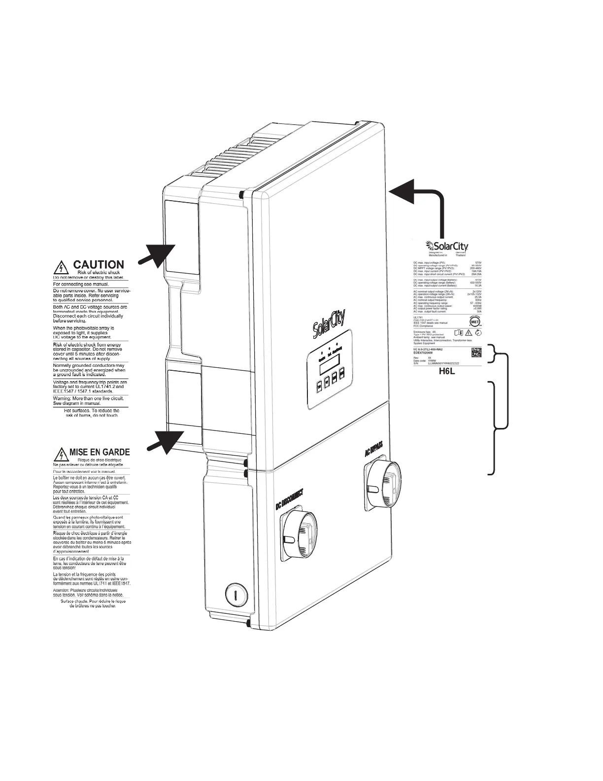 The SolarCity H6 inverter includes a safety and type labels, as shown in