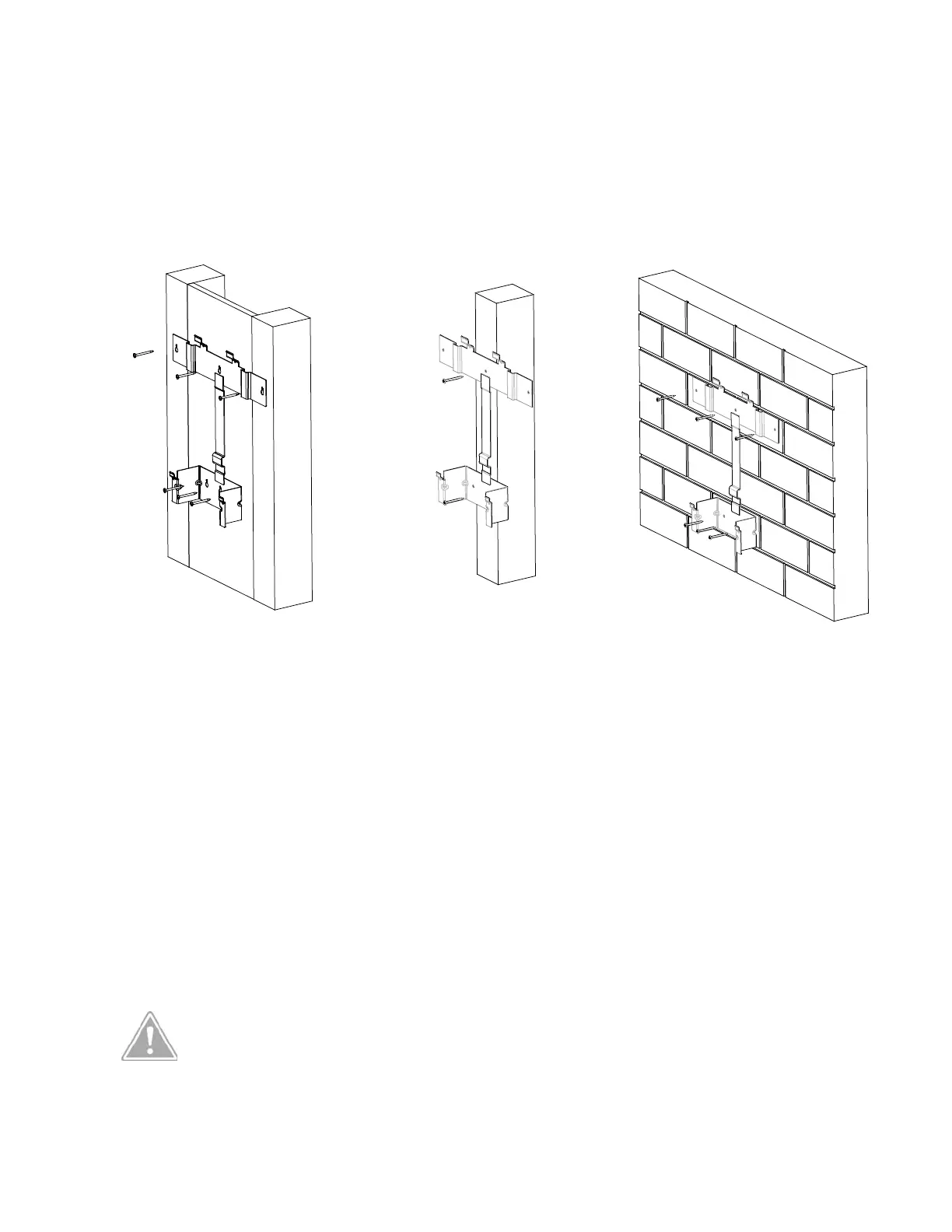• Use one (1) screw with a suitable wall anchor in any of the lower holes (center hole