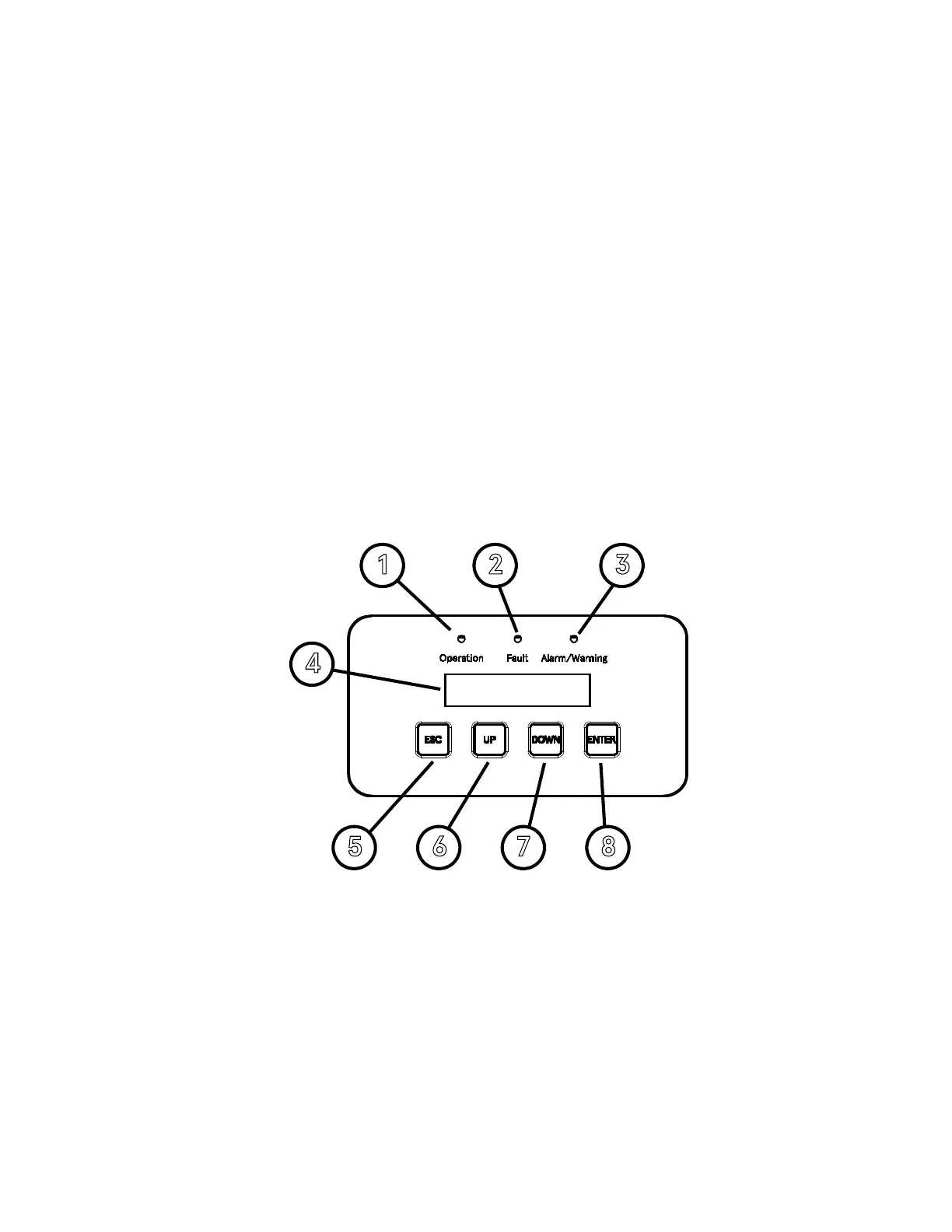 • Fault LED (2): This LED lights up red when a fault condition occurs. See
