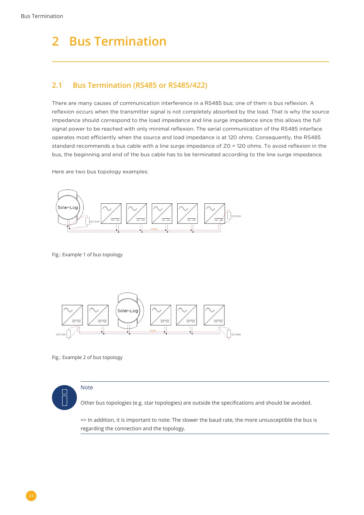 bus, the beginning and end of the bus cable has to be terminated according to the line surge impedance.