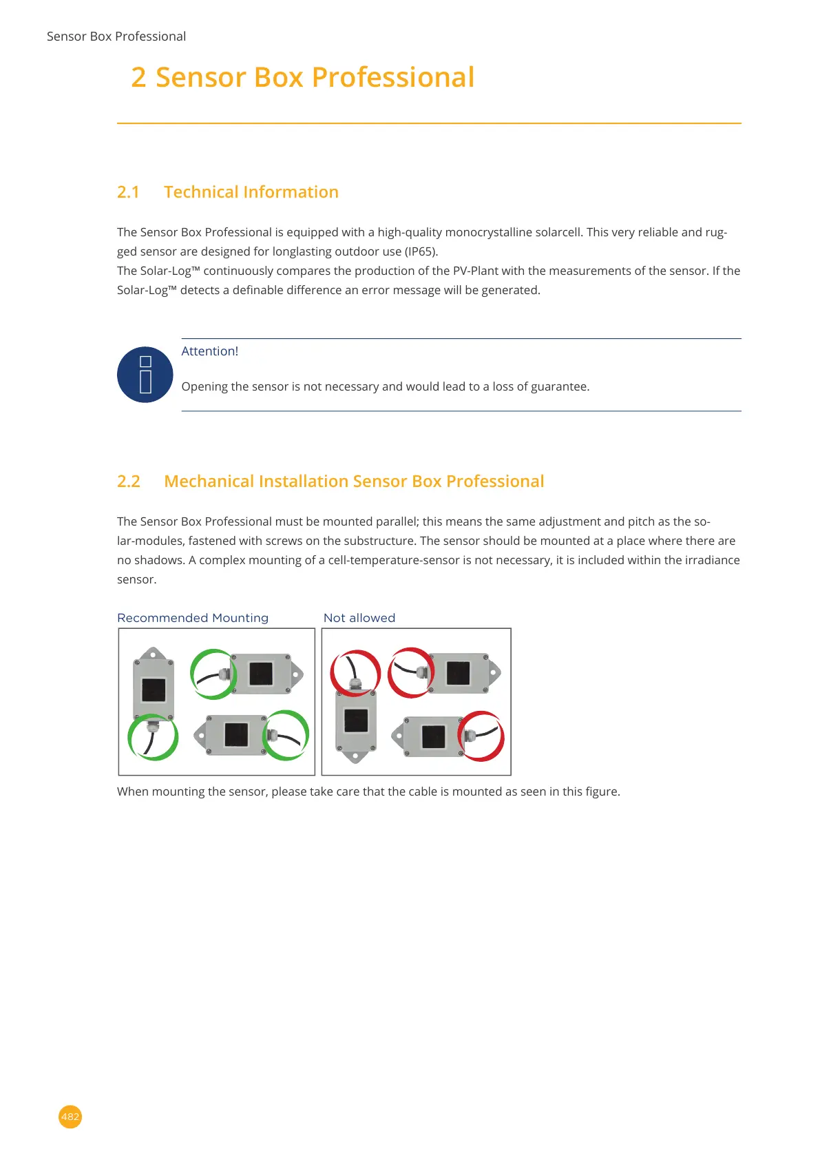lar-modules, fastened with screws on the substructure. The sensor should be mounted at a place where there are